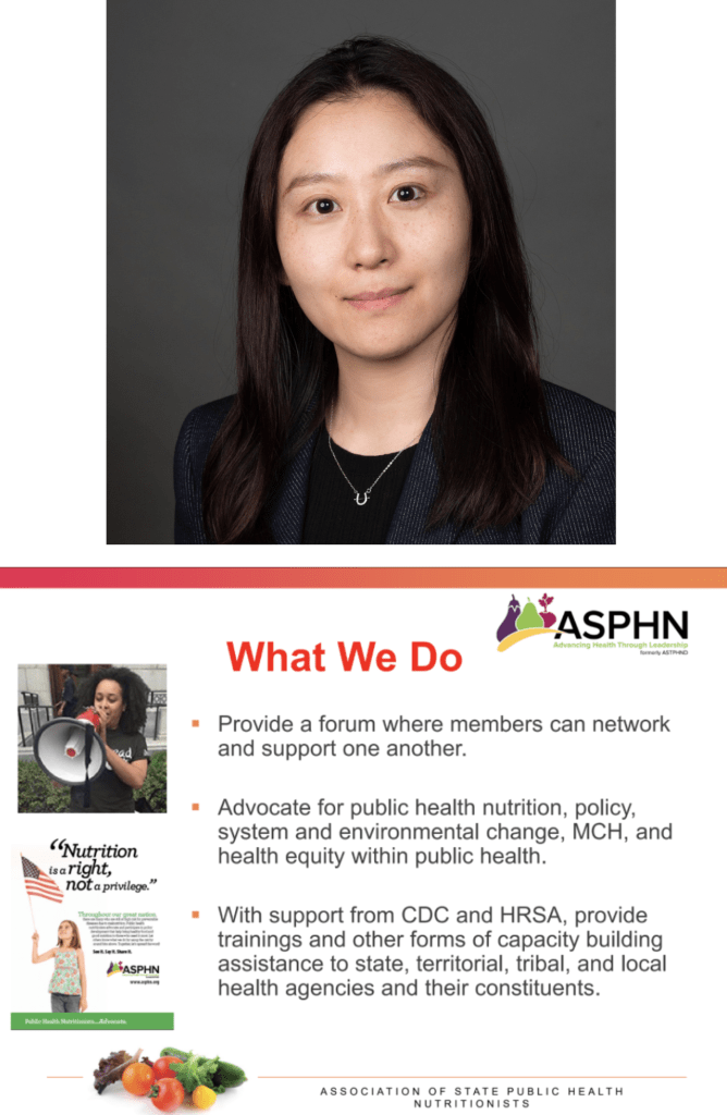 Honghui “Amber” Chang, doctoral student in the Vanden Brink Lab has received the 12-week Association of State Public Health Nutritionists (ASPHN) Health Equity Fellowship!